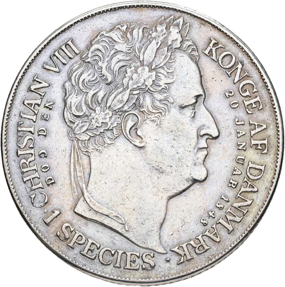 Speciedaler 1848, "Tronskiftespecie", let renset.