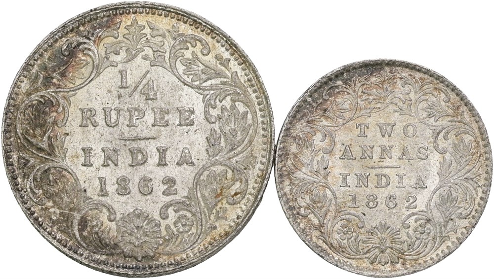 2 Annas 1862; 1/4 Rupee 1862. (2)