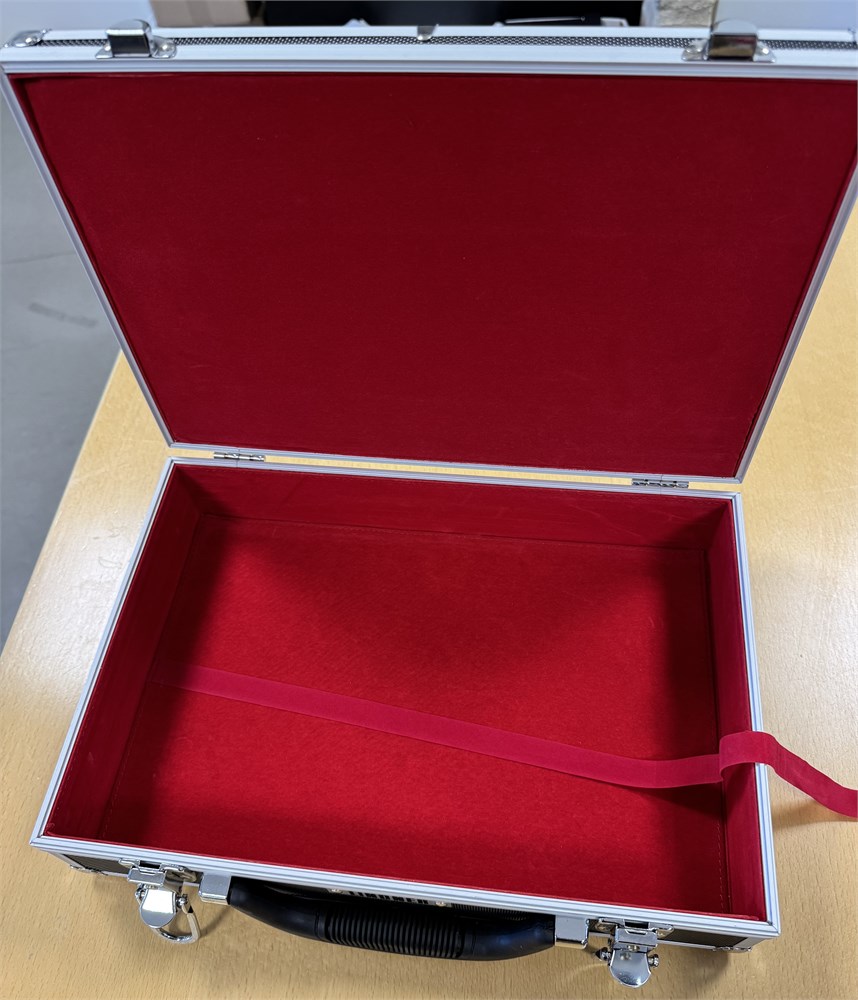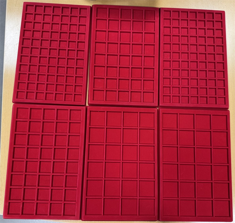 Lindnerkuffert i alu og velour med 6 bakker med plads til 282 genstande. Uden nøgle. Flot stand. Kuffert måler 35x26x10 cm.