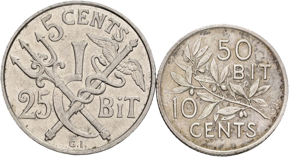 - 25 bits / 5 cents 1905 P, 50 bit / 10 cents 1905 P. (2) (14848125)