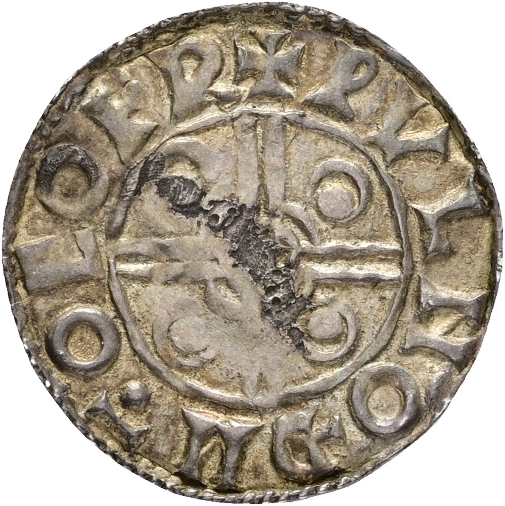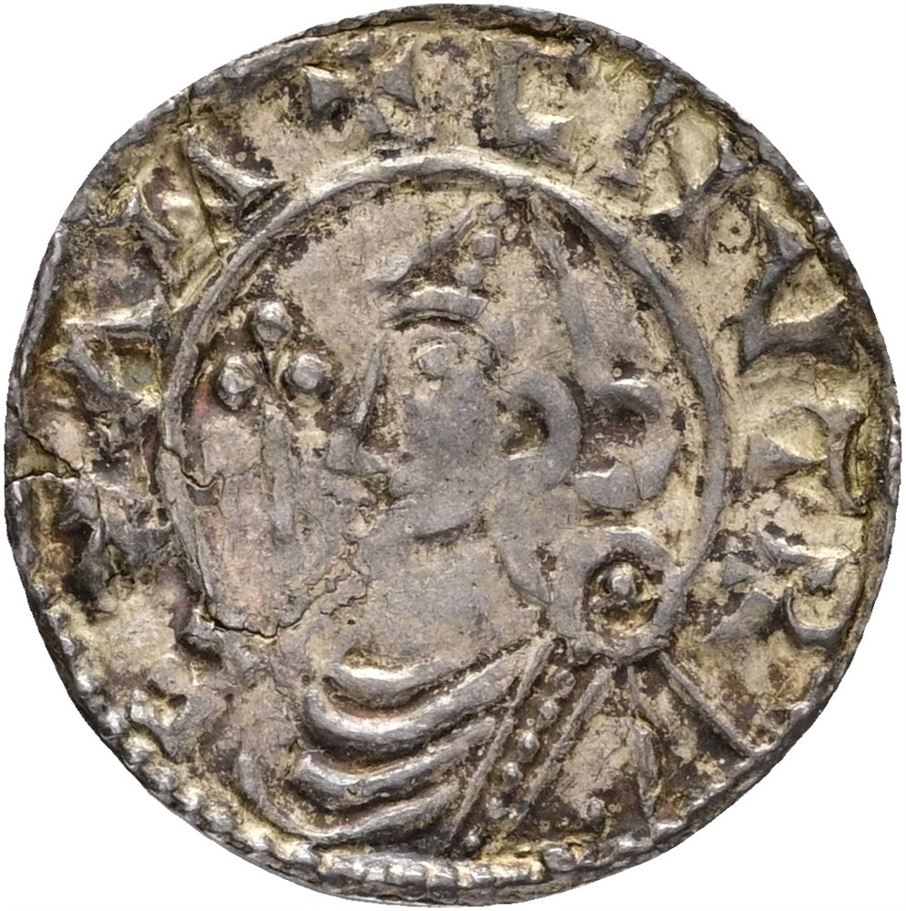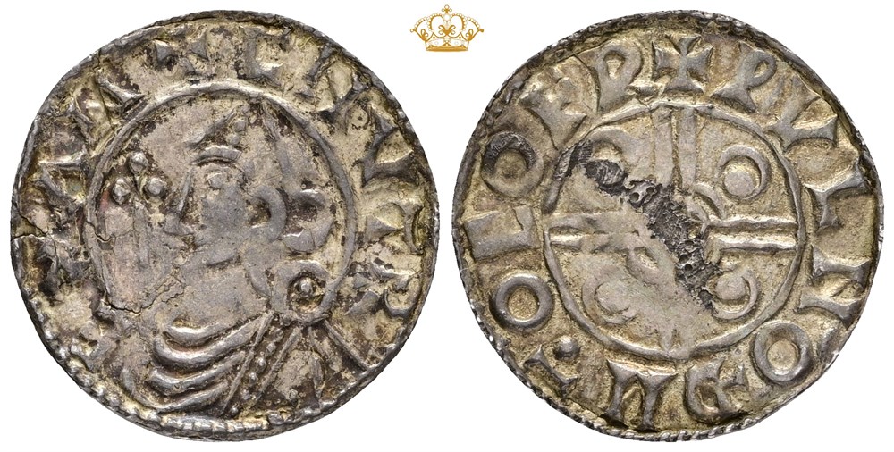 Penning af typen 'Pointed Helmet' Type, ca. 1023-1029, Wulfnoth, + CNVT REX ANGO / PVLNOD M-O EOFR.