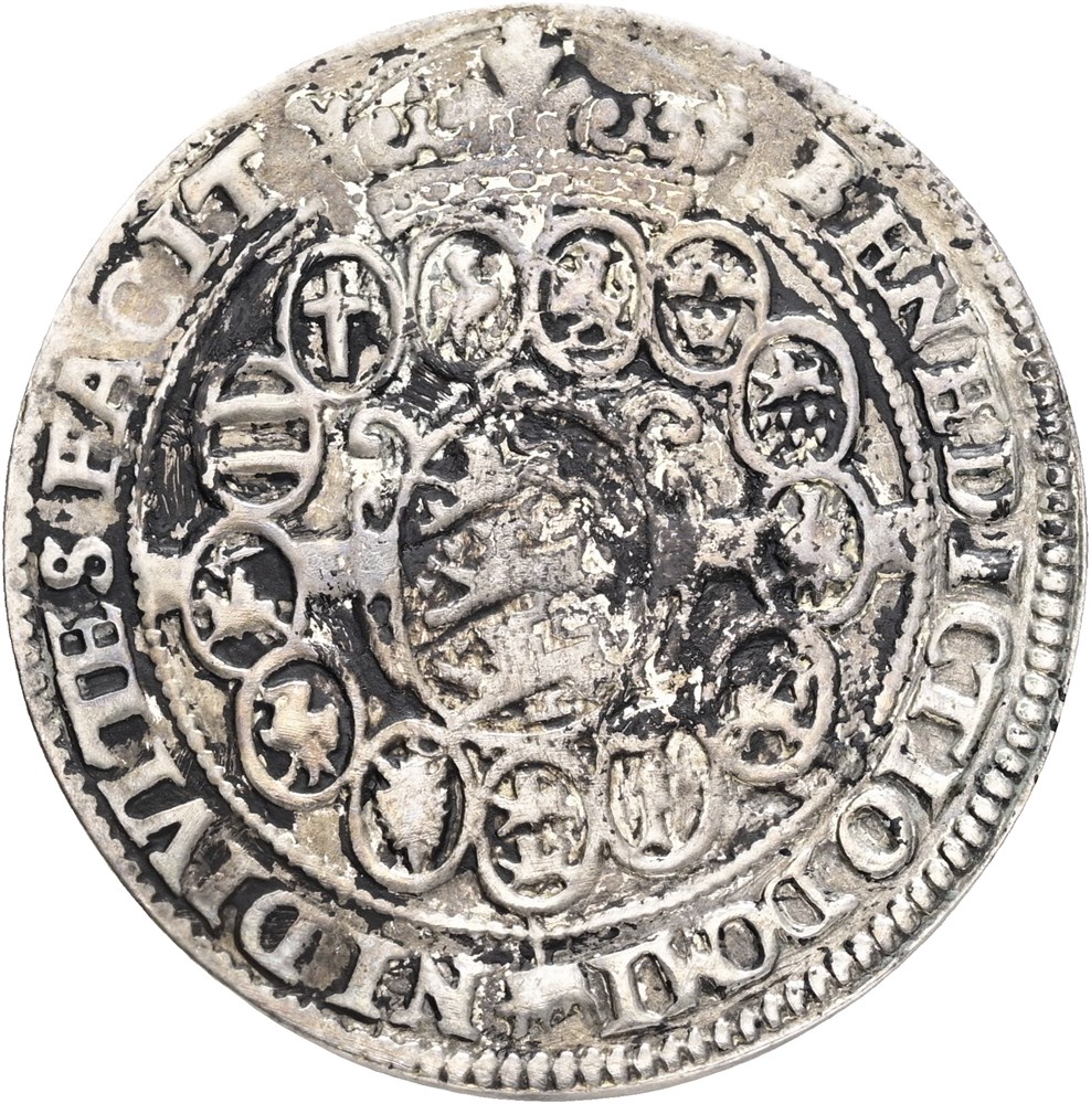 1/2 speciedaler 1628, opgraveret, renset, bearbejdet på rand, har været forgyldt.