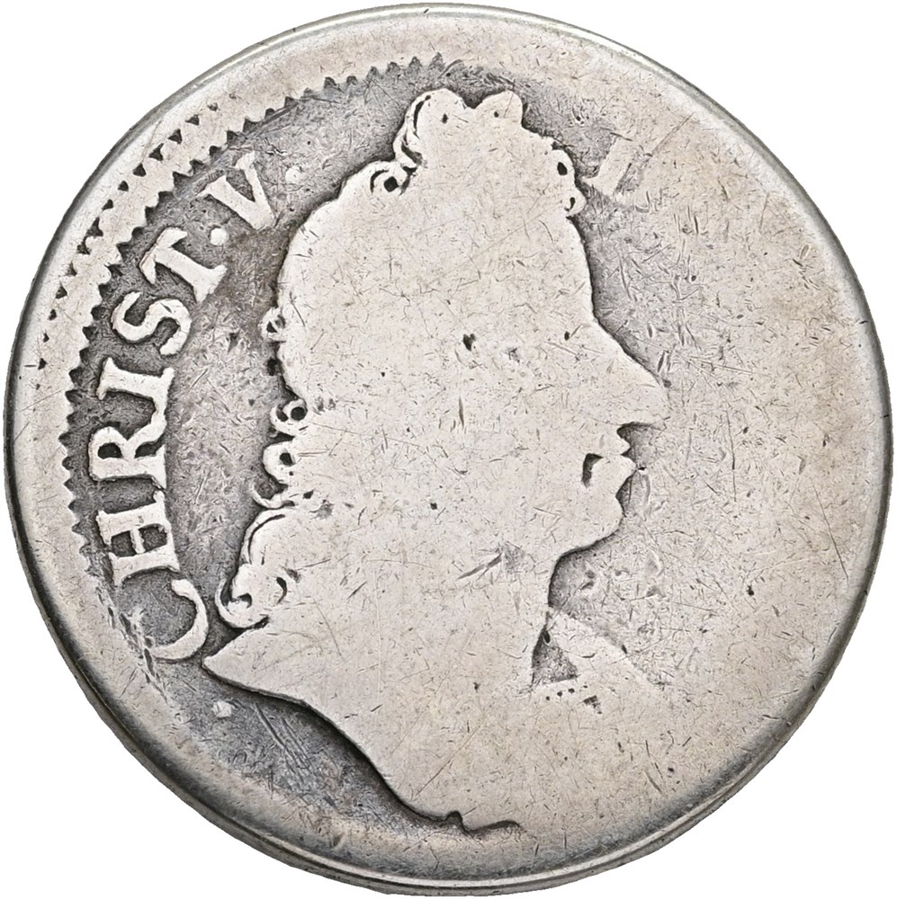 Krone 1696, klumpkrone, årstalsbestemt på baggrund af stempelstudier.