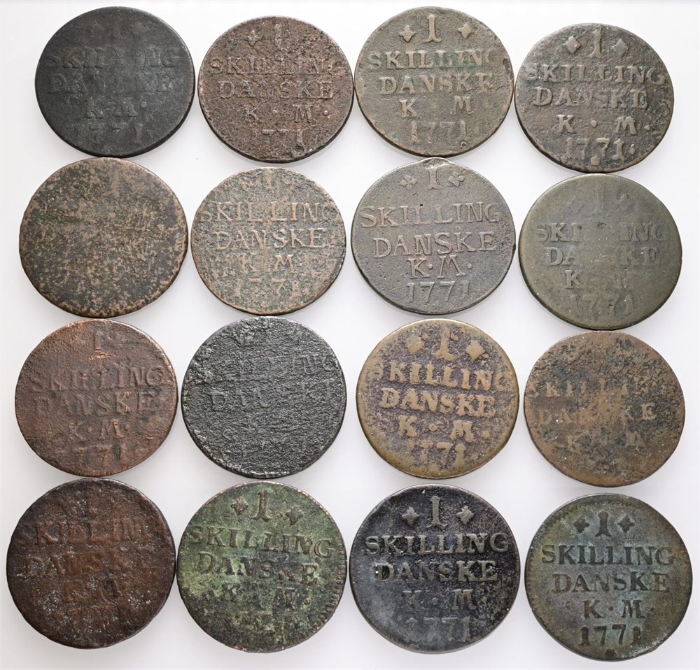 Skilling 1771, 16 stk. inkl. Schimmelmann-typen. (16)