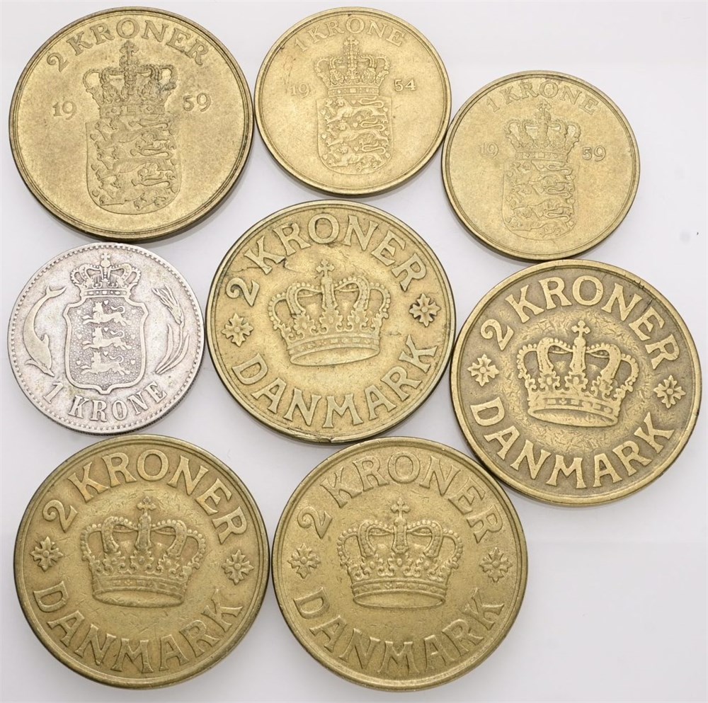 - 1 krone 1892, 1954, 1959; 2 kroner 1924, 1926, 1938, 1941, 1959. (8) (15020610)