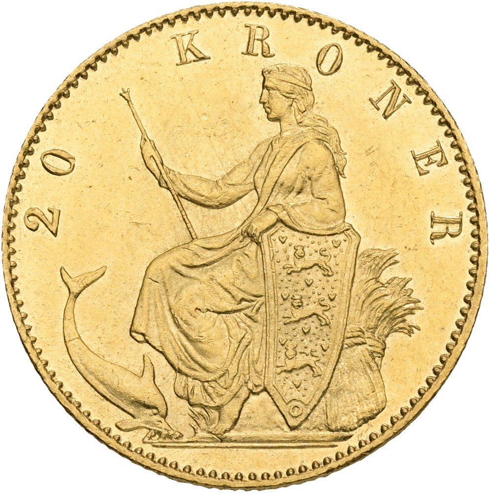 Ownership of the purchased lot is transferred to the buyer upon receipt of payment. This includes all associated fees charged by Oslo Møntgalleri A/S.