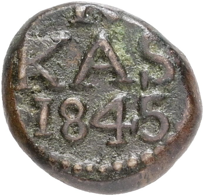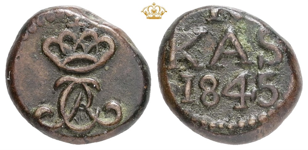 4 kas 1845, let korr. - ualmindeligt årstal af varianten med 'VIII'.