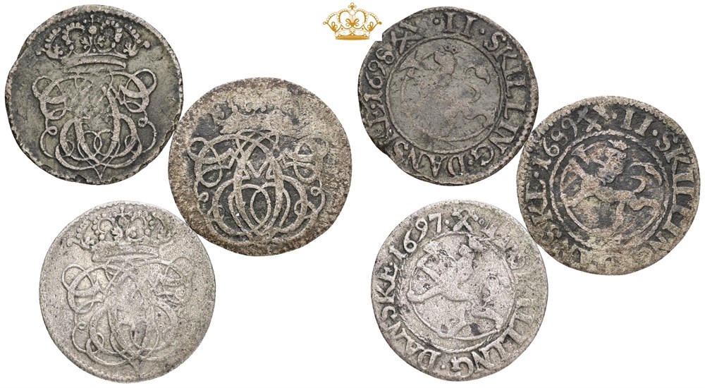 - 2 skilling 1689, 1697, 1698. (3) (15039133)