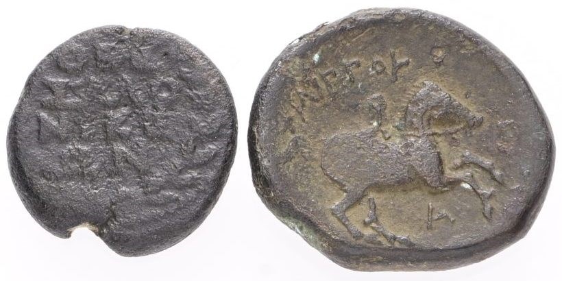Thessaloniki, pseudo-autonomous, periode Nero - Vespasian, Horse left / ΘEΣ-ΣAΛO-NIKE-ΩN, 14 mm.