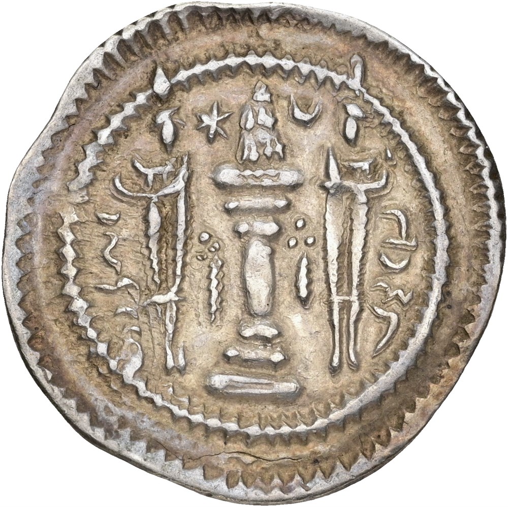 Drachm, year 34. Crowned bust right / Fire altar; attendants flanking.
