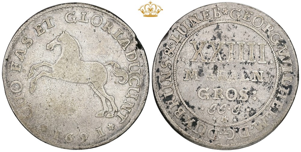 Braunsweig-Lüneburg-Celle, 24 Mariengroschen 1691, kantskade.