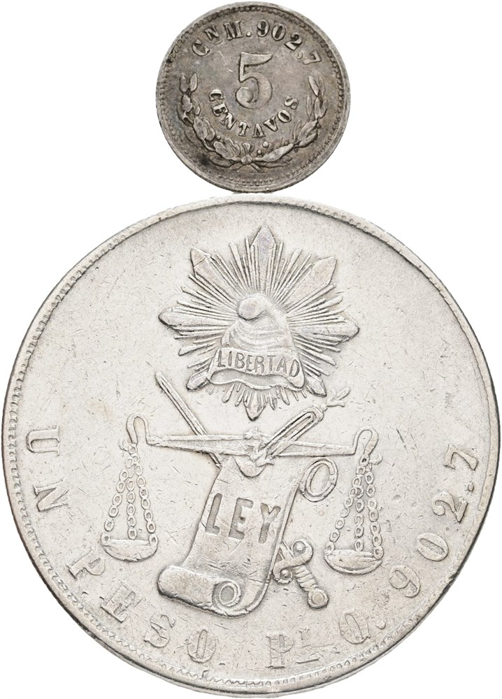 - 5 Centavos 1890; Peso 1870. (2) (15060720)