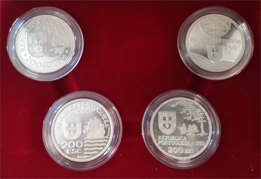 200 Escudos 1993, Ag (925/1000), 26.5 g each, few traces of handling - set with four coins in original box and with certificate.
