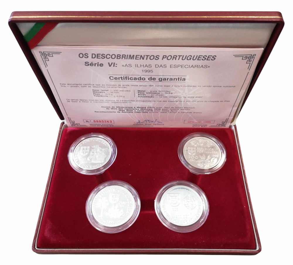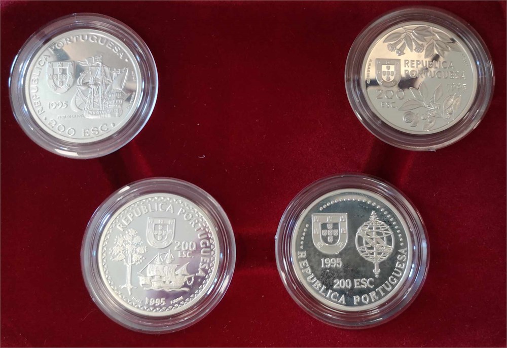 200 Escudos 1995, Ag (925/1000), 26.5 g each, few traces of handling - set with four coins in original box and with certificate.