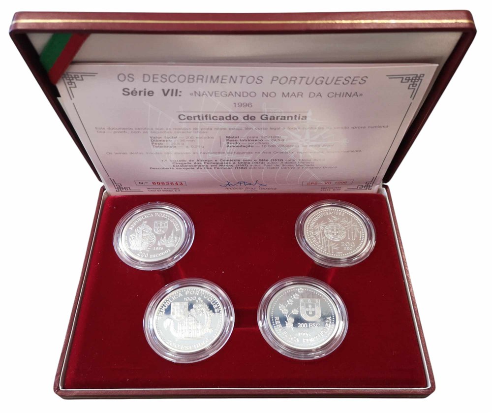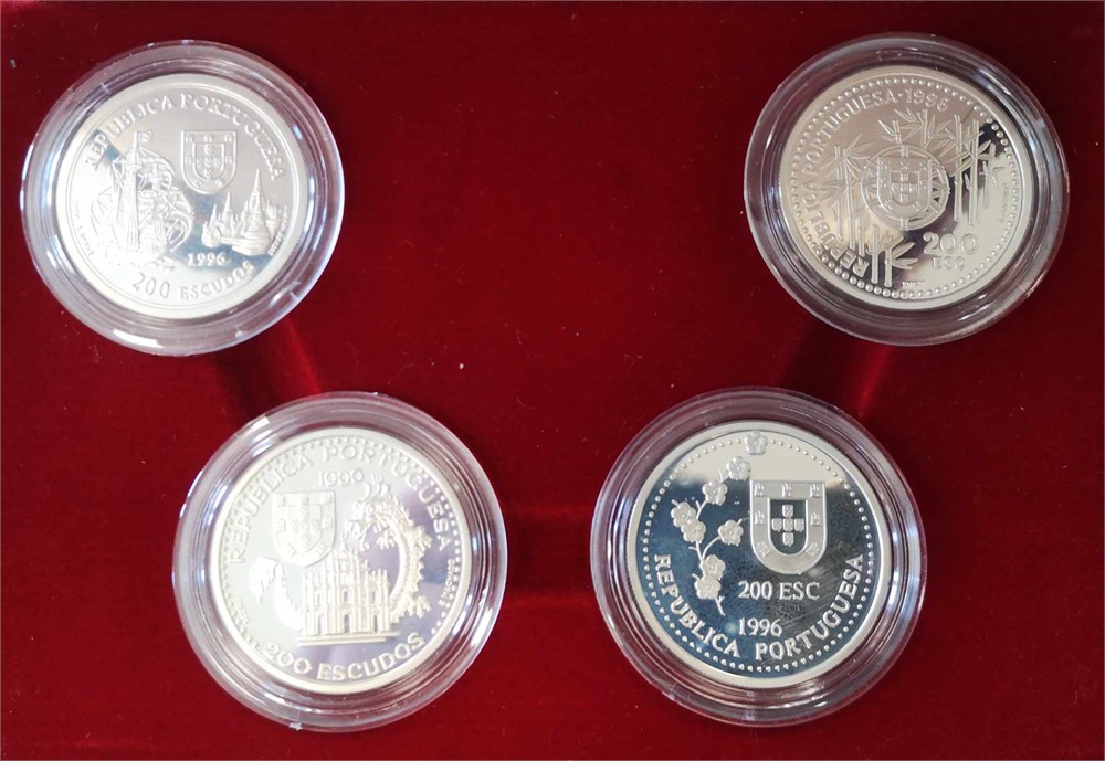 200 Escudos 1996, Ag (925/1000), 26.5 g each, few traces of handling - set with four coins in original box and with certificate.