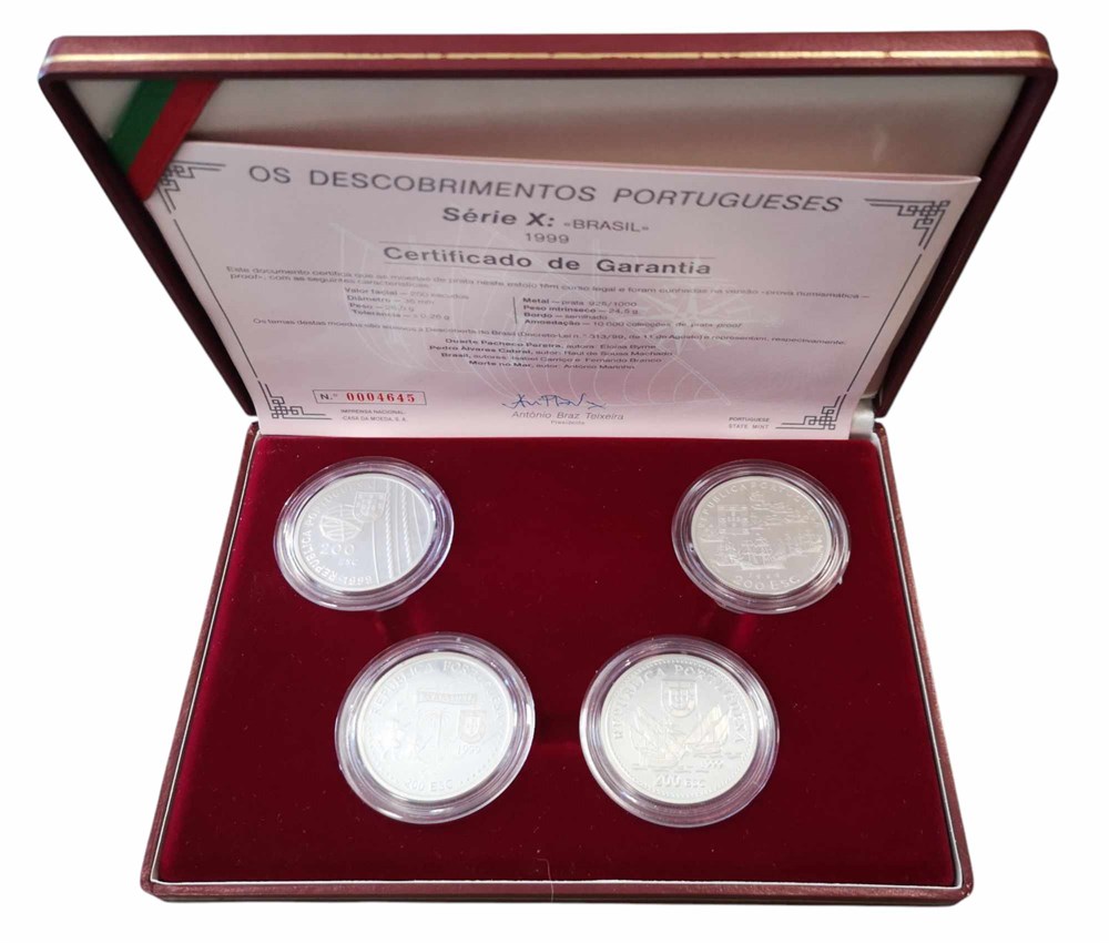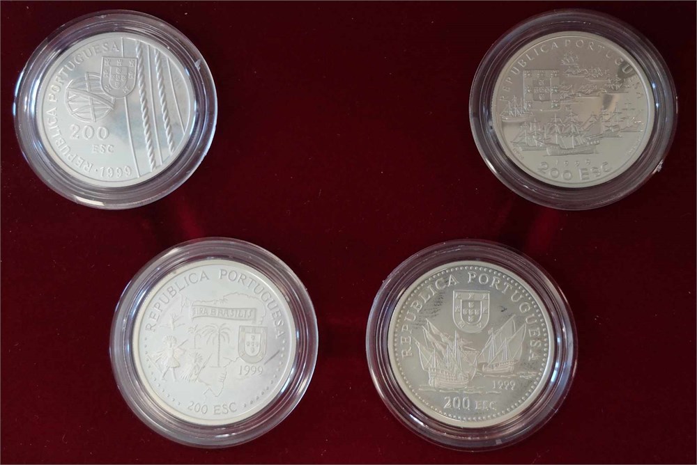200 Escudos 1999, Ag (925/1000), 26.5 g each, few traces of handling - set with four coins in original box and with certificate.