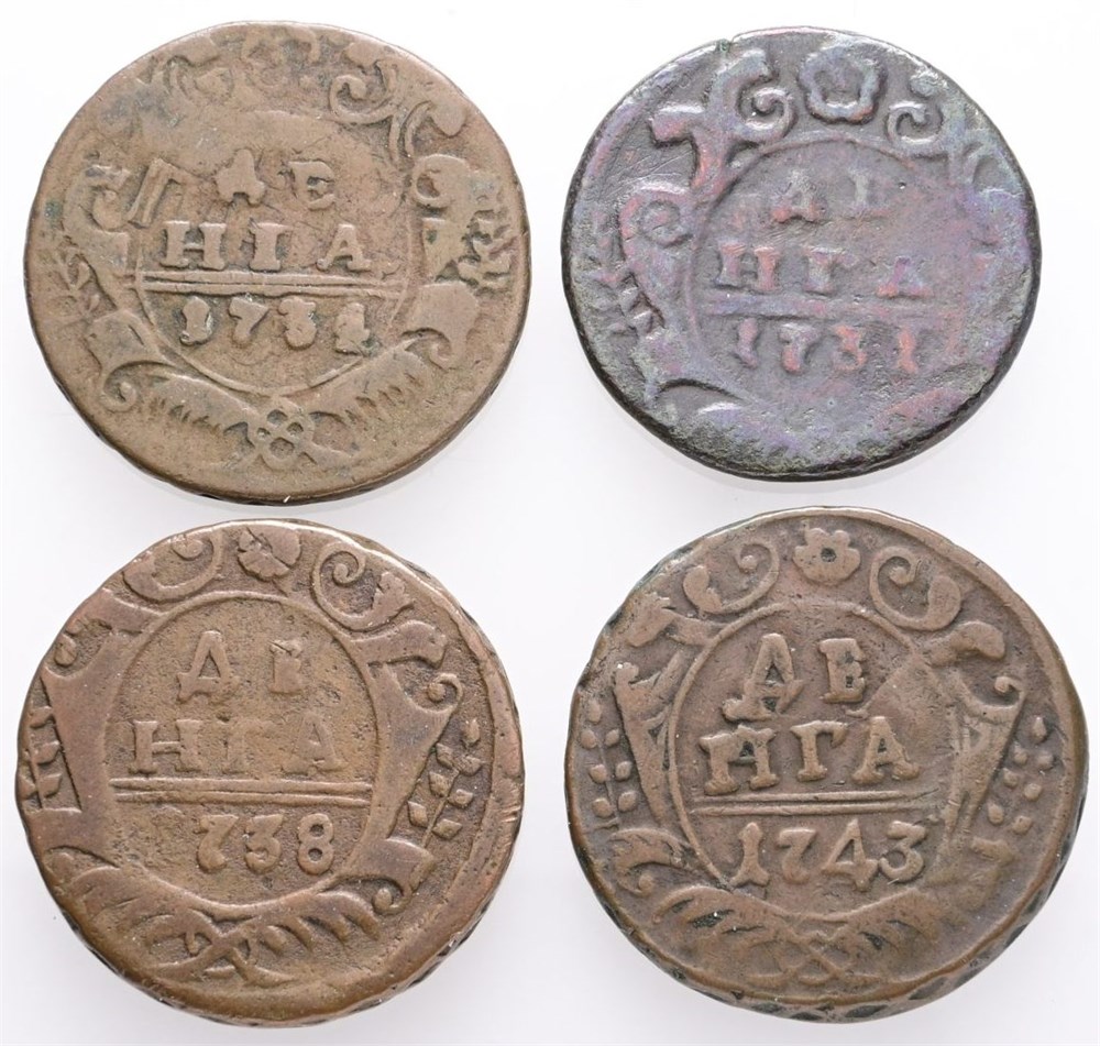 - Denga (1/2 Kopeck) 1731, 1734, 1738, 1743. (4) (15063425)