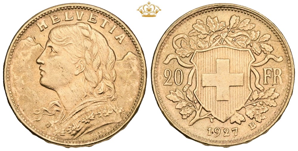 20 Francs 1927 B, Au (900/1000).