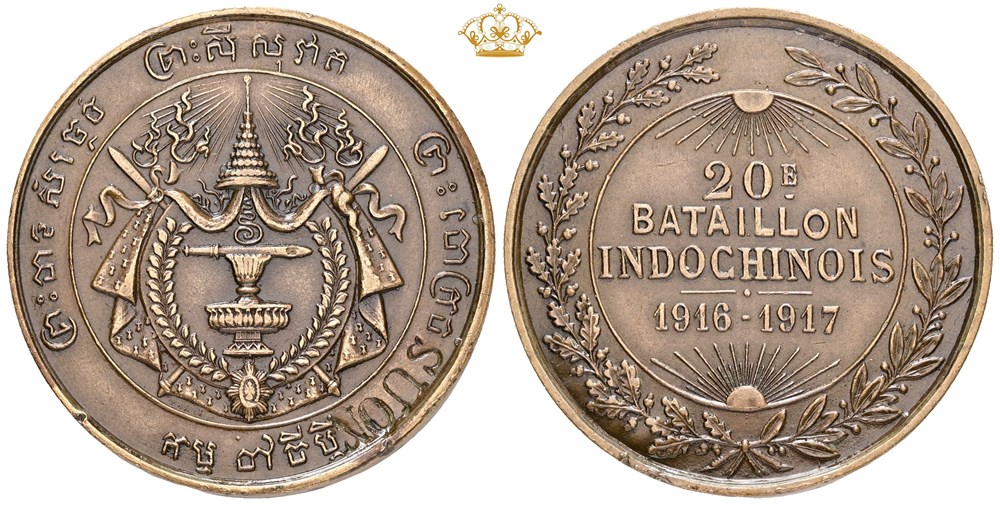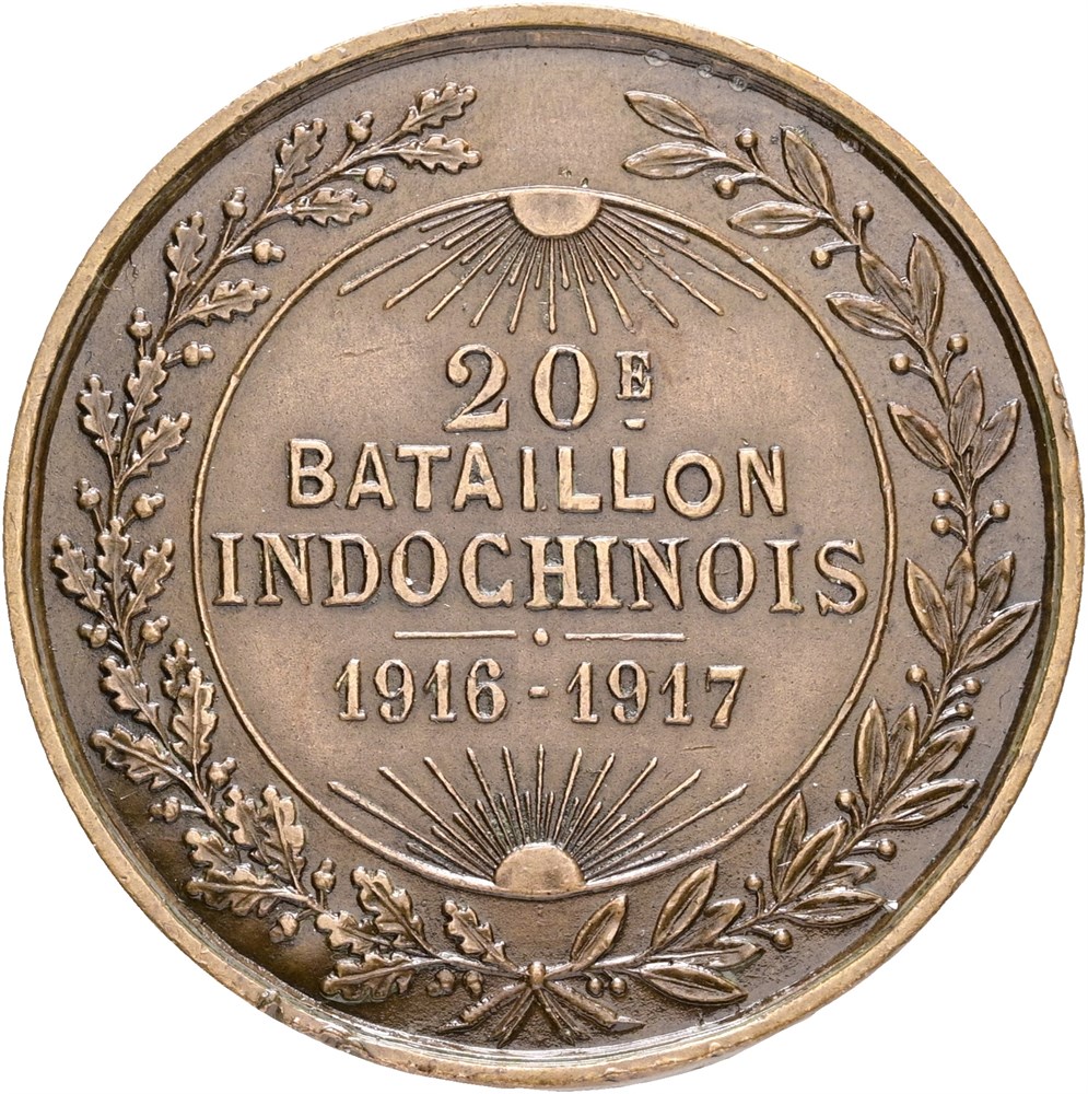 20th Indochinese Battalion of 1916-1917 / 20e bataillon indochinois 1916-1917, Ae, 32.5 mm, edge nicks, lacquered - stamped 'SUON' on reverse and 'BRONZE' on the edge.