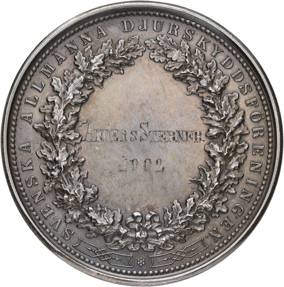 Swedish General Animal Welfare Association (Svenska Allmänna Djurskyddsföreningen), by Lea Ahlborn, Ag, 43 mm - In box.
