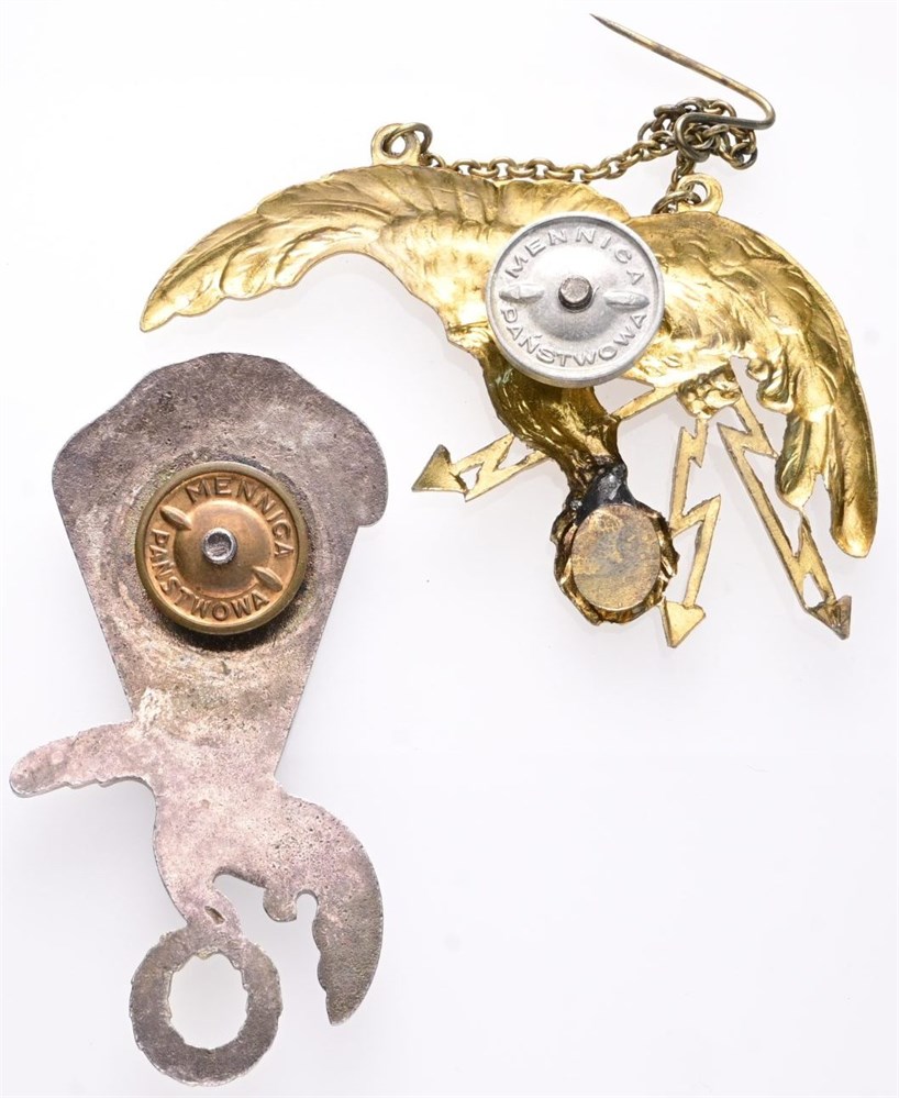 Paratrooper badge with enamel, 61x31 mm, 20.81 g, with 'Mennica Panstwowa' on screw; Polish Air Force Navigator badge, 2nd class. 64x40 mm, 13.19 g, with 'Mennica Panstwowa' on screw. (2)