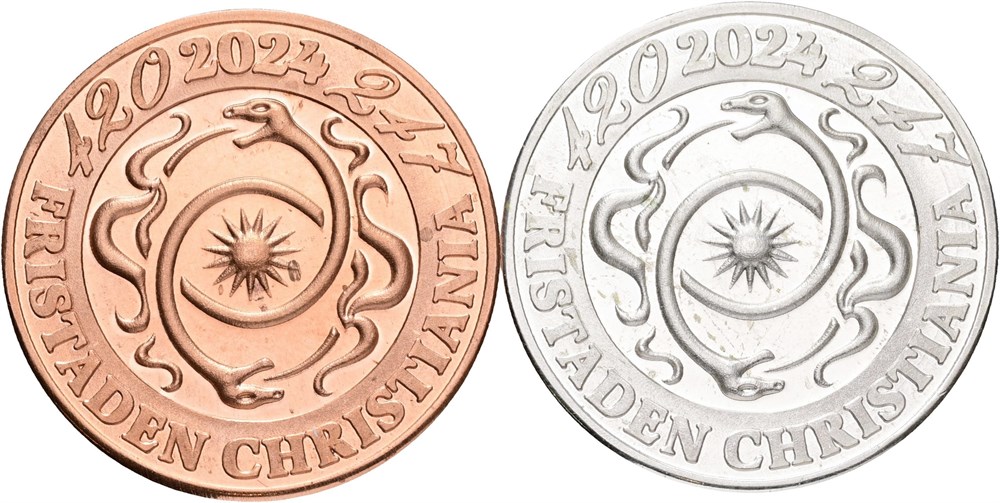Fed 2024, "Fri hash til Folket", sølv, kobber, messing. (3)