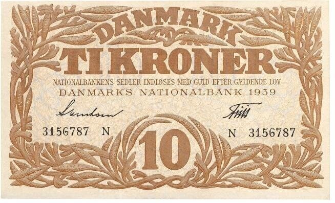 10 kroner 1939 N, nr. 3156787, Svendsen / Friis.