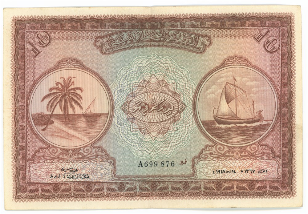 10 Rufiyaa 1947 / AH1367, no. A699876.