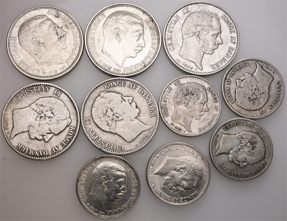 1 krone 1875, 1876, 1892, 1915, 1916; 2 kroner 1875, 1876, 1899, 1915, 1916. (10)