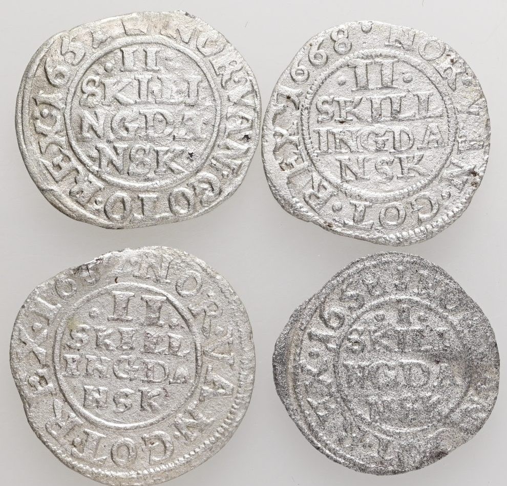 1 skilling 1658; 2 skilling 1651, 1662, 1668. (4)