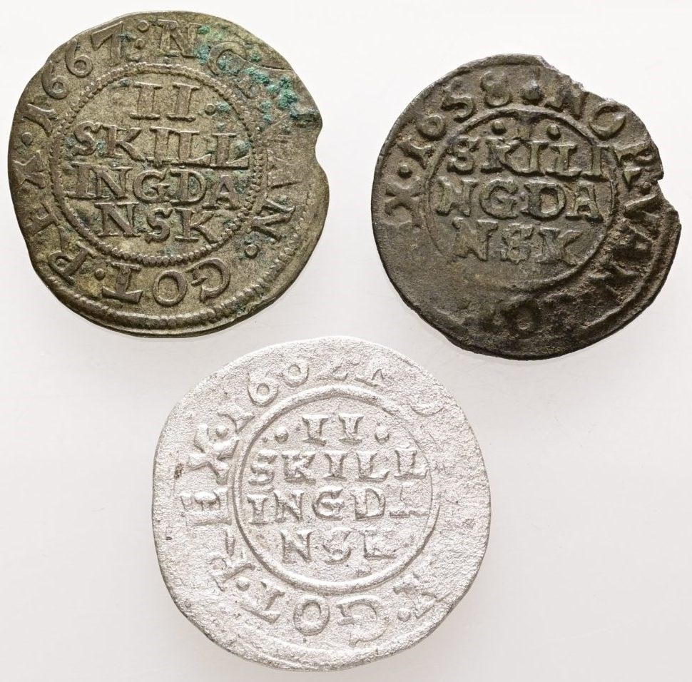 1 skilling 1658; 2 skilling 1662, 1667. (3)