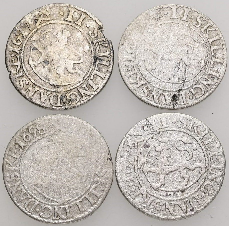 2 skilling 1697, 1698, 1699, 16XX. (4)