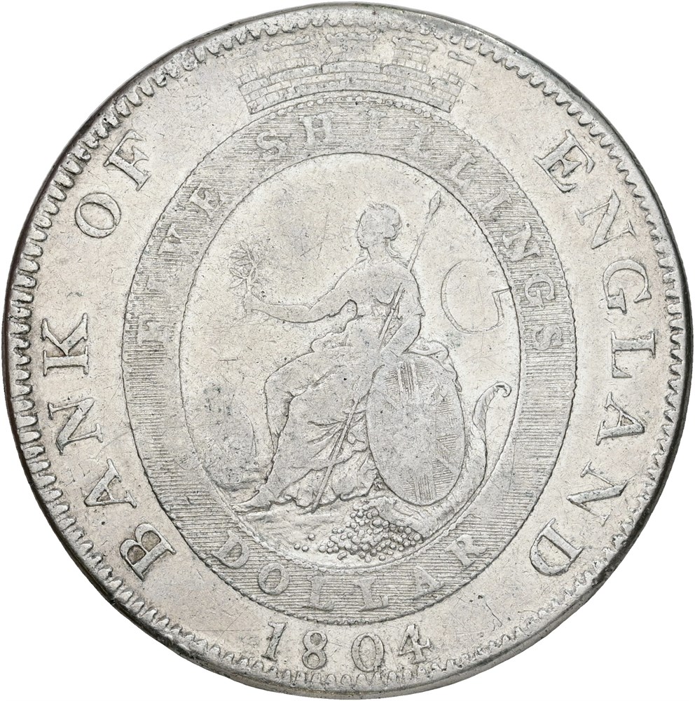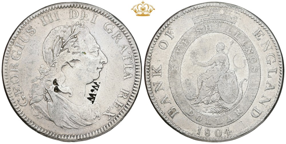 Bank of England, Dollar 1804, graffiti both sides, cleaned.