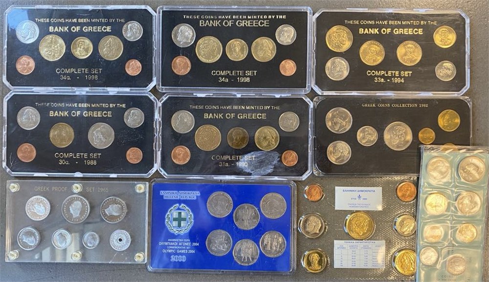 - Greek year coinsets, 1965, 1973, 1982, 1988, 1990, 1994, 1998, 2000. (10) (15259558)