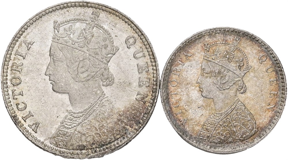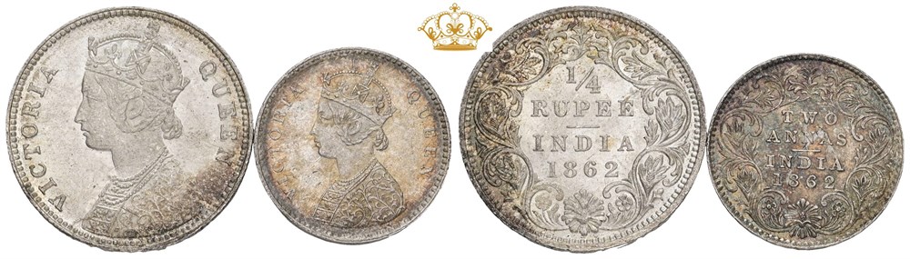 2 Annas 1862; 1/4 Rupee 1862. (2)