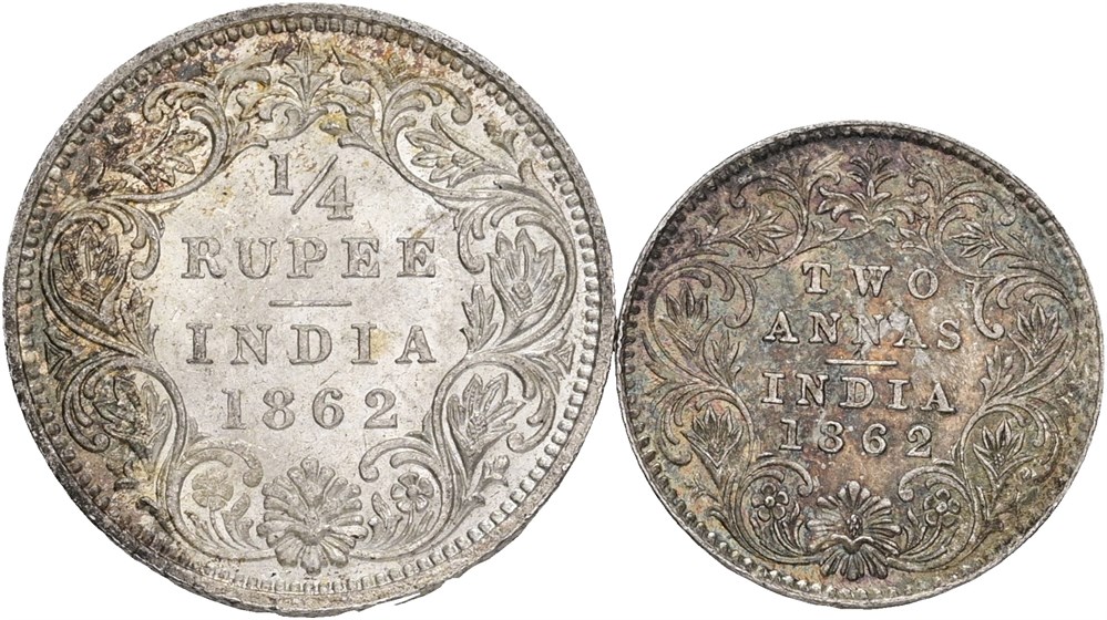 - 2 Annas 1862; 1/4 Rupee 1862. (2) (15260604)