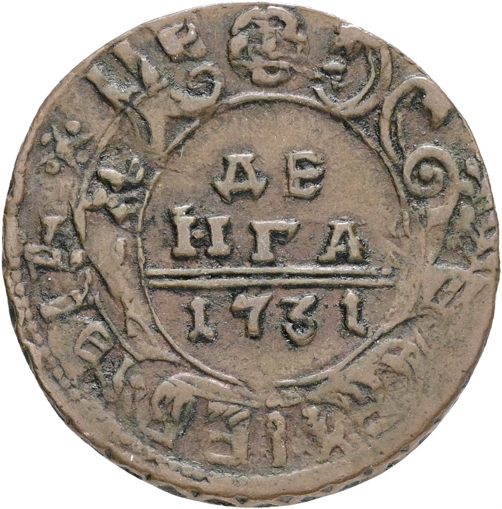 - Denga (1/2 Kopek) 1731, struck on an earlier coin. (15262264)