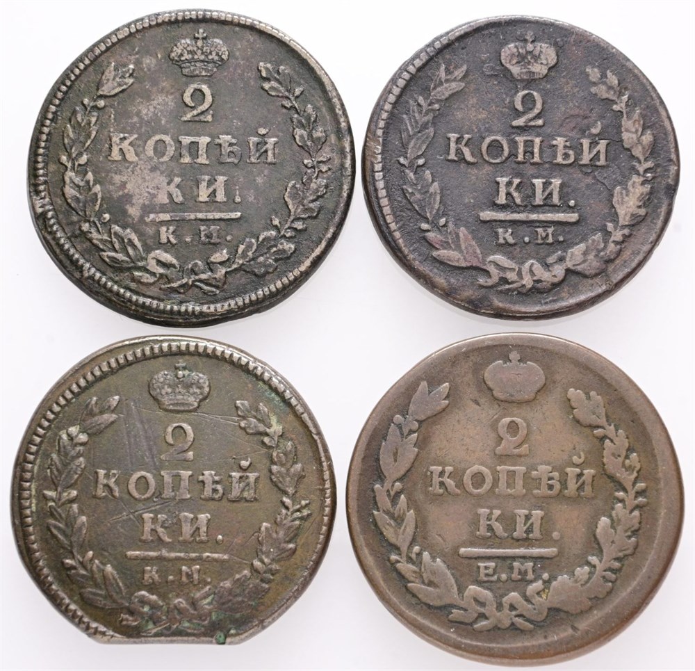 2 Kopecks 1813 КМ АМ, 1817 ЕМ НМ, 1820 КМ АД, 1830 КМ АМ. (4)