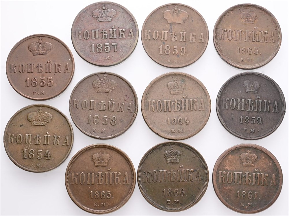 Kopeck 1854, 1855, 1857, 1858, 1859, 1859, 1860, 1861, 1864, 1865, 1866. (11)
