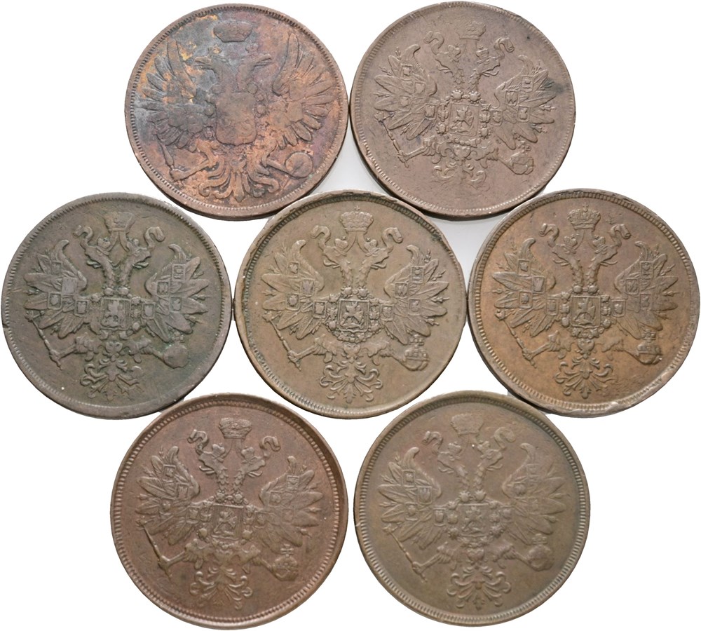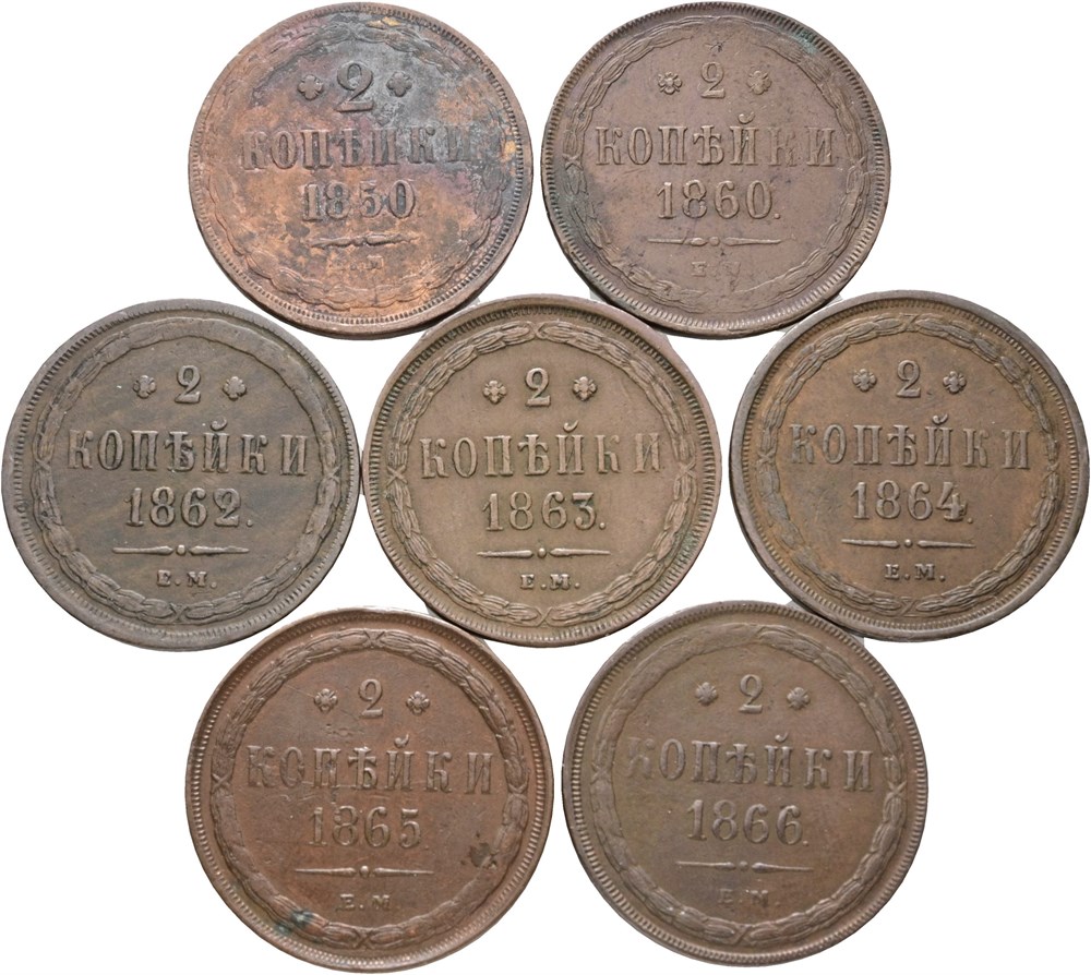 2 Kopecks 1850, 1860, 1862, 1863, 1864, 1865, 1866. (7)