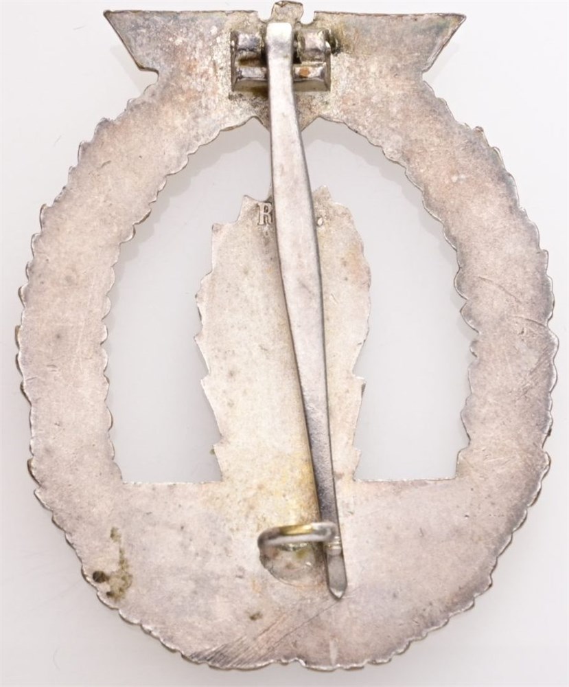 Minesweeper War Badge, gilt and silvered Ae, by Rudolf Karneth, 55x44 mm, marked 'R.K.' on the reverse.