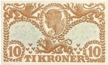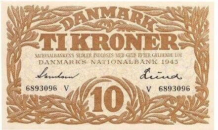 10 kroner 1943 V, nr. 6893096, Svendsen / Lund