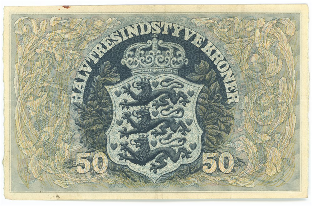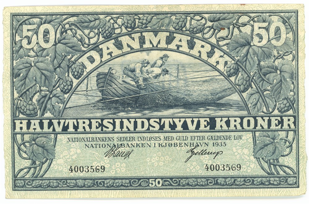 50 kroner 1935, nr. 4003569, V. Lange / Gellerup, pletter.