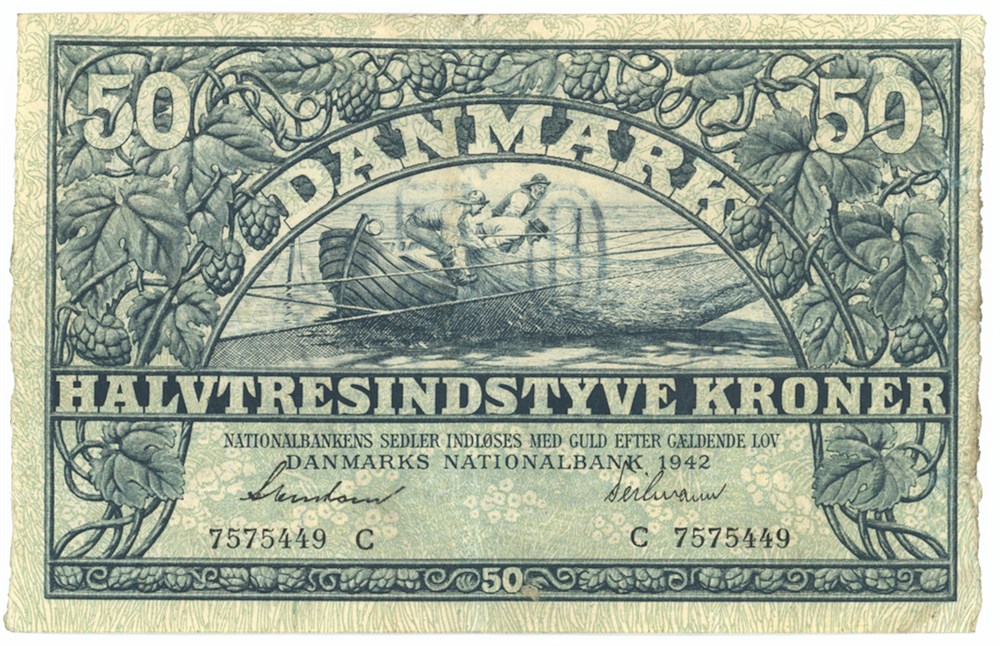 50 kroner 1942 C, nr. 7575449, Svendsen / Teilmann.