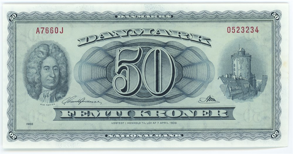 50 kroner 1966 A7 0J, nr. 0523243, Haugen Johansen / Riim.