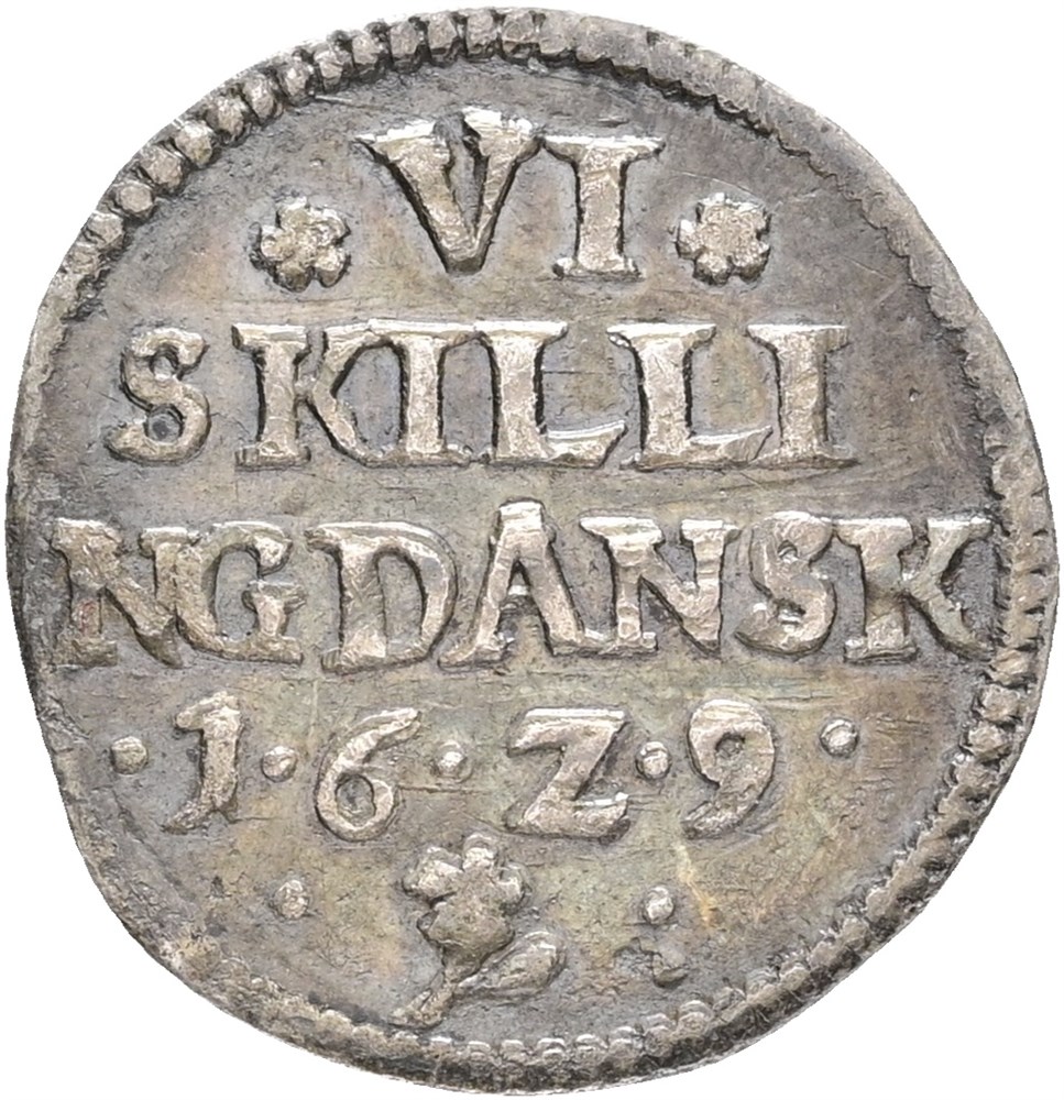 6 skilling 1629, ridser på bagsiden.