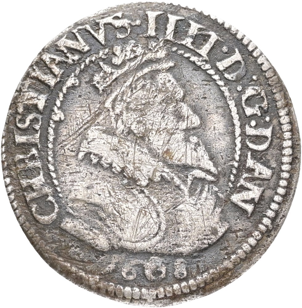 8 skilling 1608, ridser på forsiden.