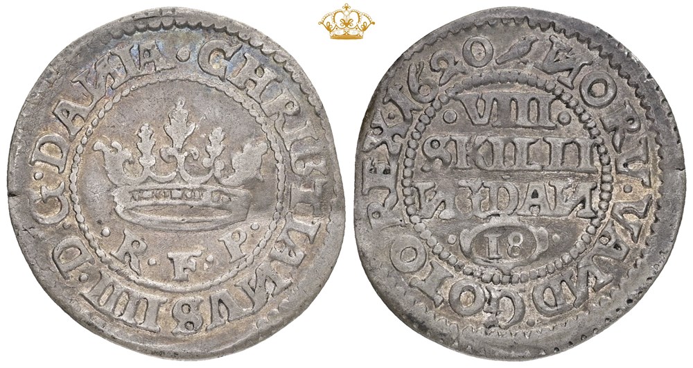 8 kroneskilling 1620, let buklet.