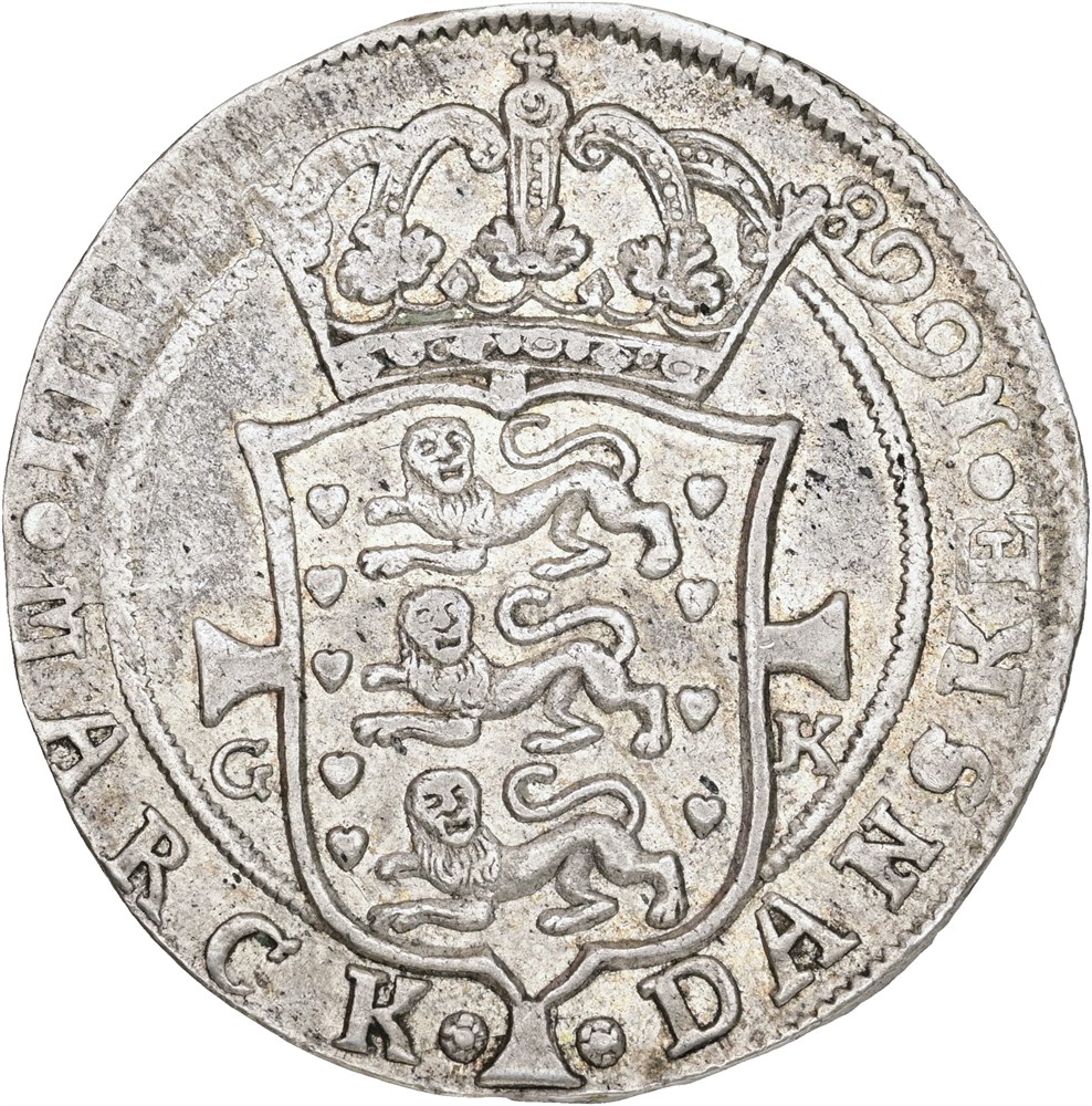 4 mark / krone 1668, delvist bevaret møntskær.