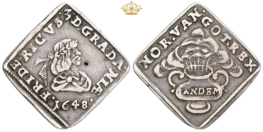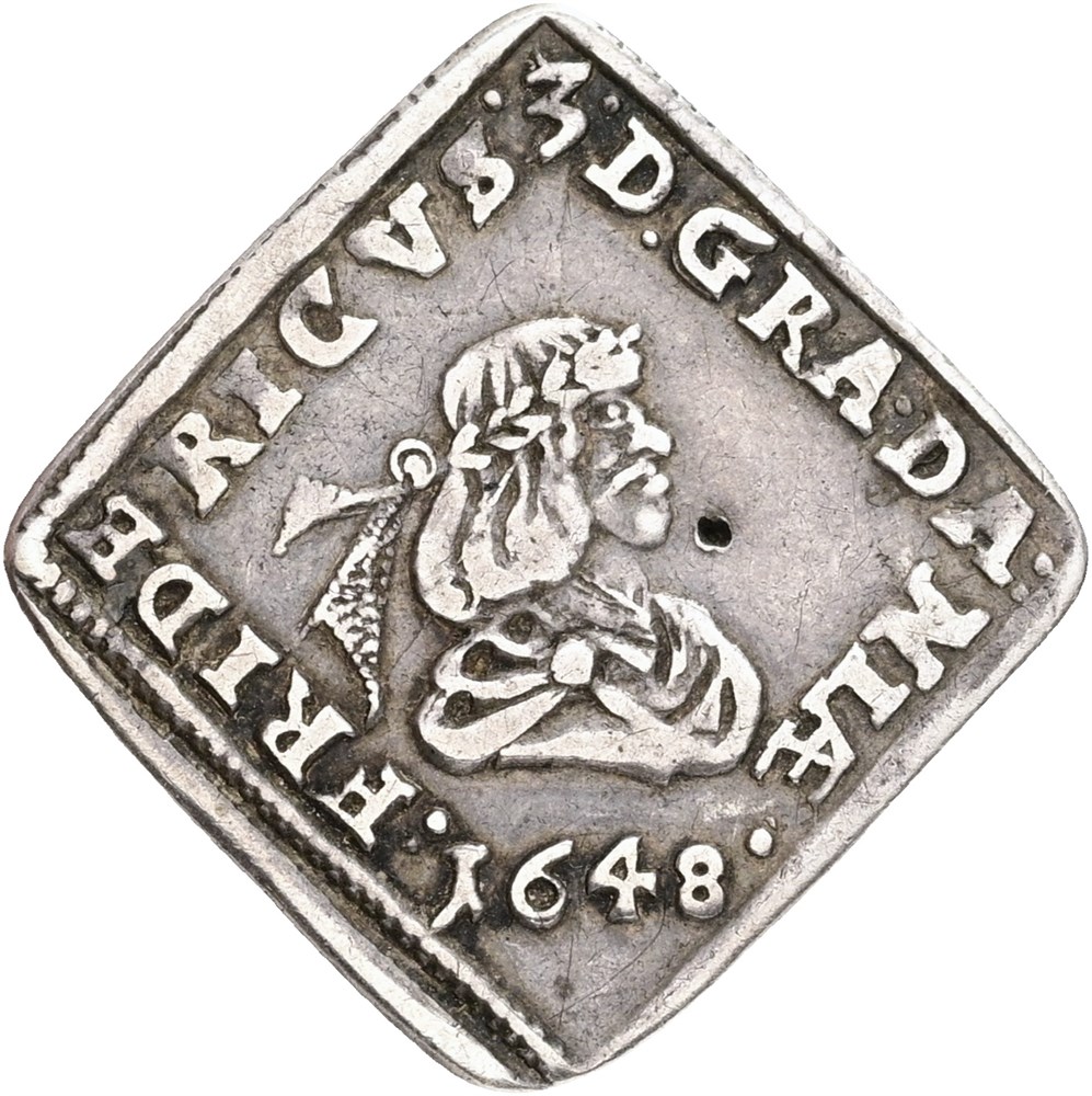1/12 speciedaler 1648, ikke gennemgående hul på forsiden.